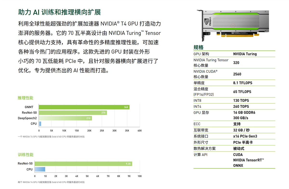 NVIDIA Tesla T4 (英伟达 T4) 技术参数...